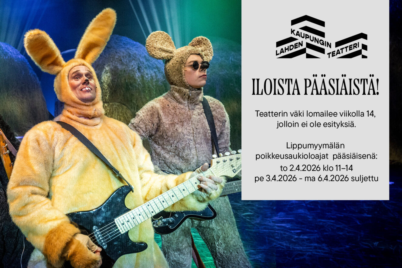 Liput teatterin lippumyymälästä. Varaukset puhelimitse 0600 30 5757 tai sähköpostitse lktliput@lahti.fi